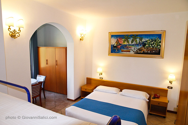 Family room which has a double bed cm 160x190 and two bunk beds (all four beds in the same room), thus being able to accommodate a family of max. 4 persons (2 adults and 2 children).